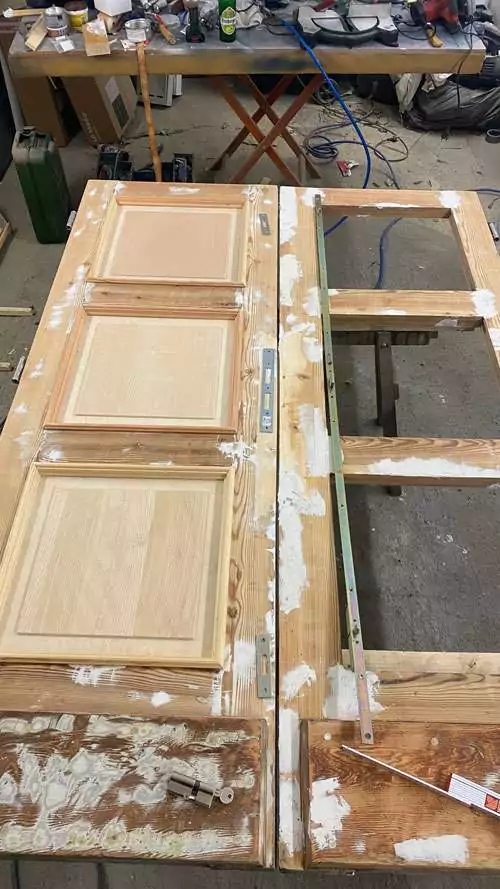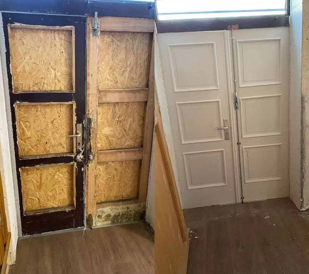 Einige Stunden Arbeit eines Mitgliedes und die Türe sieht nicht nur wieder „Schick“ aus, sondern entspricht über die 3 Fachverrieglung, auch den Forderungen der Versicherung.